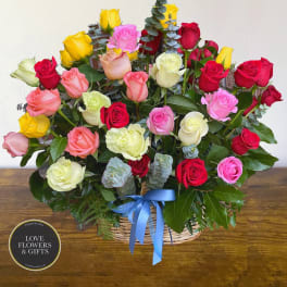 Price: $385.00Assorted 50 Roses Basket